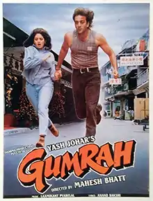 Gumrah (Hindi pronunciation: [ɡʊmraːɦ], transl. Mislead) is a 1993 Indian Hindi-language action crime drama film directed by Mahesh Bhatt and written jointly by Sujit Sen and Robin Bhatt. It stars Sridevi, Sanjay Dutt, Anupam Kher, and Rahul Roy. In the film, Roshni (Sridevi), an aspiring singer, is assisted by Rahul Malhotra (Roy) in flourishing her career and they fall in love. However, on a trip to Hong Kong, she is abandoned by him and later arrested by the police for supposed involvement in trafficking cocaine.