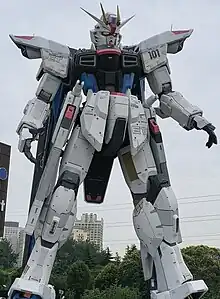Outside of the Lalaport shopping complex in Shanghai, China, there is a life-sized (18 meters tall) statue of the Freedom Gundam robot that moves and has glowing eyes. It was installed in 2021.[44]