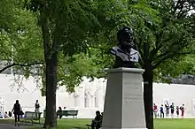 There is a statue of Moynier in the Parc des Bastions, next to the University of Geneva.