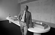 In 1965, while not yet a licensed architect, he designed a house and studio for his parents in Amagansett, New York, that became famous and revolutionized beach house design. When he did take the professional licensing exam, he was surprised to see a multiple-choice question on the test that asked "Which of these is the organic house?" The choices included the house he designed for his parents. He wanted to answer that the organic house was his, but in order to pass the exam he chose Frank Lloyd Wright's Fallingwater House. He knew that was the answer they wanted. He passed.[2] By 1977, Gwathmey had designed 21 houses and renovations while still under 40 years old and ten years of practice.[3] From 1965 through 1991, Gwathmey taught at Pratt Institute, Cooper Union for the Advancement of Science and Art, Princeton University, Columbia University, the University of Pennsylvania, the University of Texas, and the University of California at Los Angeles. He was Davenport Professor (1983 and 1999) and Bishop Professor (1991) at Yale, and the Eliot Noyes Visiting Professor at Harvard University (1985). Gwathmey was the Spring 2005 William A. Bernoudy Resident in Architecture at the American Academy in Rome[2][3]
