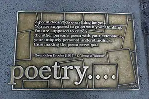 - ↑ "Statue Of Poet Gwendolyn Brooks To Be Unveiled On Her Birthday « CBS Chicago". Chicago.cbslocal.com. June 7, 2018. Archived from the original on June 14, 2018. Retrieved June 14, 2018.