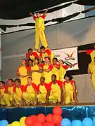 Gymnastic formation has general objective of demonstration of force, passion, and union of the participants and not a modality to dispute championship. General flow is from small-light mounting to large-heavy mounting. The performance of the NGOs, such as the Soka Gakkai International (SGI), is widely variable, such as, bi-dimensional wave, sky rocket, windmill, walking wall, walking pyramid, catapult, instantaneous stand-up pyramid, instantaneous stand-up tower, three-layers' plane tower, four-layers' tower, and rarely five-layers' tower. The six-layers' tower that stood up in Osaka, Japan, in 1982 was indexed on the Guinness Book.