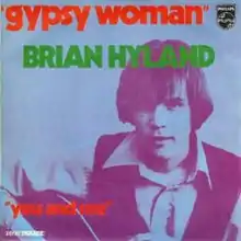 "Gypsy Woman" is a 1961 rhythm and blues song written by Curtis Mayfield and recorded by his group the Impressions. The group's first single following the departure of lead singer Jerry Butler, it reached No. 2 on the US Billboard R&B chart, No. 20 on the Billboard Hot 100[3] and number 17 on the Cash Box chart. It also appeared on the group's 1963 eponymous debut album. Joe Bataan (1967), Brian Hyland (1970), Bobby Womack (1985), and Santana (1990) covered this song.
