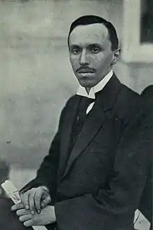 Gyula Hevesi was born into a Jewish family. He was son of Adolf Hevesi and Mirjam Polacsek (Pártos). He continued his high school studies at the Lovag Street grammar school in Budapest. He then studied to be a chemical engineer at the Technical University of Budapest, where he graduated in 1912.[1] During 1913–1914 he worked as a technical consultant of the Piešťany Spa Directorate, From 1914 to 1918 he worked at the United Incandescent Lamp and Electricity Company initially as a plant engineer then as a research engineer.[1] In 1917 he organized and until 1919 led the National Association of Applied Engineers, the world's first socialist engineering trade union. On December 29, 1918, he married Irma Róthbart (later wife of Ervin Sinkó), daughter of Jakab Róthbart and Janka Rosenwald,[2] but this marriage soon ended in divorce. A year later, he married Stern in Budapest on July 19, 1919, the daughter of Mózes Stern and Regina Auspitz.[3]