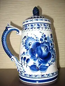 Gzhel (Russian: Гжель, IPA: [ɡʐelʲ]) is a Russian style of blue and white ceramics which takes its name from the village of Gzhel and surrounding area, where it has been produced since 1802.