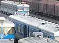 Diesel multiple unit is particularly suitable for exploitation on railway lines with high passenger frequency, on shorter commuter traffic distances, as well as for greater distances on non-electrified lines. It consists of two motor cars, each being equipped with a driver's cab and the possibility of control depending on the running direction. From one driver's cab it is possible to control three coupled sets of two-part DMU's. A two-part set can carry a total number of 288 passengers, out of which number there are 144 passenger seats. Maximum speed of DMU is 120 km/h. The auto-stop device manufactured by RIZ (Zagreb Radio Industry) has now also been built in. From 1994 onwards, the original JŽ painting scheme of the units began to disappear, as the units started receiving new HŽ exterior colour scheme[1]