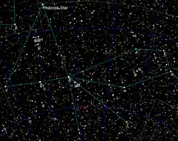 HD 186302 (also designated HIP 97507)[9] is a star in the constellation of Pavo. It is 185 light-years (57 parsecs) away from Earth, with an apparent magnitude of 8.76.[9] It was identified in November 2018 as a potential solar sibling to the Sun. Similar by spectrum and size, it was suspected to have formed in the same stellar nursery as the Sun 4.6 billion years ago.[10] Common origin with Sun was found to be unlikely in a 2019 paper, as HD 186302's galactic orbit is very different from Sun's.[11]