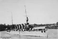 On 21 October 1918, Brisbane departed for the eastern Mediterranean, and was between Colombo and Suez when World War I ended.[5] The battle honour "Indian Ocean 1917" recognises the cruiser's wartime service.[6][7] The ship reached Murdos in late November, and spent most of December operating with the Australian Destroyer Squadron, before visiting Smyrna and the Dardanelles.[5]