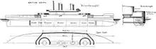 Right elevation and deck plan of Dreadnought as depicted in Brassey's Naval Annual, 1888