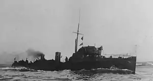 HMS Wizard was a Conflict-class destroyer built by the White shipyard for the Royal Navy, and launched on 26 February 1895.[1] In 1910, she was reconstructed with only two funnels. She is believed to be the only destroyer fitted with in turning screws. She was sold in 1920.