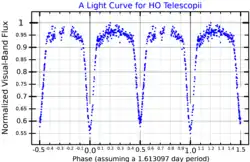 - 1 2 3 4 5 6 7 8 9 Sürgit, D.; et al. (July 2017). "Absolute parameters of detached binaries in the southern sky - III: HO Tel". New Astronomy. 54: 109–114. Bibcode:2017NewA...54..109S. doi:10.1016/j.newast.2017.01.013.