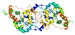Heparan sulfate glucosamine 3-O-sulfotransferase 3B1 is an enzyme that in humans is encoded by the HS3ST3B1 gene.[5][6] Heparan sulfate biosynthetic enzymes are key components in generating myriad distinct heparan sulfate fine structures that carry out multiple biologic activities. The enzyme encoded by this gene is a member of the heparan sulfate biosynthetic enzyme family. It is a type II integral membrane protein and possesses heparan sulfate glucosaminyl 3-O-sulfotransferase activity ( HS3ST3A1). The Sulfotransferase domain of this enzyme is highly similar to the same domain of heparan sulfate D-glucosaminyl 3-O-sulfotransferase 3A1 and these two enzymes sulfate an identical disaccharide. This gene is widely expressed, with the most abundant expression in liver and placenta.[6]