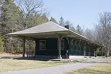 Haines Falls is a hamlet (and census-designated place)[1] located east of Tannersville in the Town of Hunter, in Greene County, New York, United States.[2][3] Haines Falls is located at 42°11′45″N 74°5′49″W / 42.19583°N 74.09694°W.[4] The hamlet of Haines Falls was always a mountain resort town, unlike Hunter and Palenville which had tanneries. Haines Falls is at the head of Kaaterskill Clove and is the former site of the Catskill Mountain House, Kaaterskill Hotel, and Laurel House which sat atop the famous Kaaterskill Falls. In 1825, Thomas Cole, founder of the Hudson River School of landscape painters, did his first Catskill mountain paintings in Haines Falls: Lake with Dead Trees at South Lake and the Kaaterskill Falls.