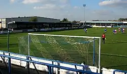 Halesowen played on at least three different grounds in the late 1870s before moving to the Stourbridge Road Ground, now known as the Grove, around 1881.[12] The ground was used for cricket and was three-sided for many years. A small stand behind the top goals and a cricket pavilion were built in the 1920s. Before this, the players would change in the Waggon & Horses pub on Stourbridge Road.[13] In 1934 another small wooden stand was constructed along the perimeter of the James Grove Button Factory.[14] During the 1950s, the Shed end was constructed along with changing rooms, built on the site of the old cricket pavilion.