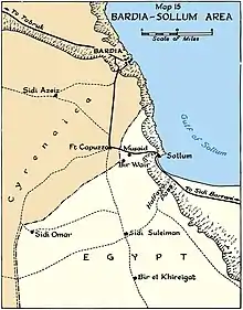 There was extensive fighting between Allied and Axis forces in Egypt and Libya during the Western Desert campaign from 1940 to 1942. Halfaya Pass, about 12 kilometres (7.5 mi) from Sollum was the scene of major engagements in 1941 and 1942. After the war, several interments from the battlefield and nearby locations, including Fort Capuzzo, Bardia, Minquar el Zannan, and Camerons Burial Ground were consolidated to Halfaya Sollum War Cemetery.[1][2]