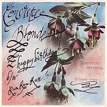 7. Happy Birthday (European 7-inch single sleeve notes). Concrete Blonde. I.R.S. Records. 1989. 006 24 1004 7.{{cite AV media notes}}: CS1 maint: others in cite AV media (notes) (link)
