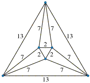 - 1 2 Harborth, Heiko; Kemnitz, Arnfried; Möller, Meinhard; Süssenbach, Andreas (1987), "Ganzzahlige planare Darstellungen der platonischen Körper", Elemente der Mathematik, 42 (5): 118–122, MR 0905393.