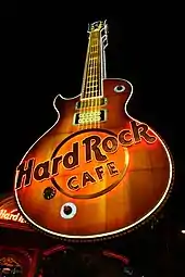 The Hard Rock Cafe closed on December 31, 2016, as Hard Rock International wanted to focus efforts on its newer location at the nearby Showcase Mall.[162] The café sat vacant for several years,[183] and its Gibson Les Paul guitar sign was disassembled in October 2017.[184] YESCO had built the sign and rented it to Hard Rock International while the restaurant was in operation.[185] The sign was refurbished and put on display at the city's Neon Museum in 2019.[186][187]