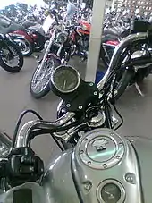In 1977, the FXS Low Rider was introduced. The Low Rider had alloy wheels front and rear, two disc brakes on the front wheel, extended forks with a 32° rake, and a 26" seat height.[6] Unlike the Super Glide, the Low Rider was an instant hit; outselling all other Harley-Davidson models in its first full year of production.[7] All three FX models returned to using Fat Bob tanks, but with a special center divider that included a tachometer.[3]