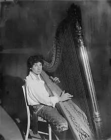 The modern Celtic harp began to appear in the early 19th century in Ireland, contemporary with the dying-out of earlier forms of Gaelic harp. Dublin pedal harp maker John Egan developed a new type of harp which had gut strings and semitone mechanisms like an orchestral pedal harp; it was small and curved like the historical cláirseach or Irish harp, but its strings were of gut and the soundbox was much lighter.[54] In the 1890s a similar new harp was also developed in Scotland as part of a Gaelic cultural revival.[55] In the mid-20th century Jord Cochevelou developed a variant of the modern Celtic harp which he referred to as the "Breton Celtic harp"; his son Alan Stivell was to become the most influential Breton harper, and a strong influence in the broader world of the Celtic harp.