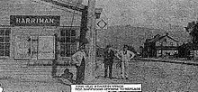 ![]() New Harriman station depot, seen in 1911 in a photograph by James E. Bailey, the Erie's official photographer and dispatcher from Meadville, Pennsylvania. | |||||||||||||||||||||