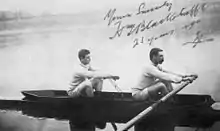 Blackstaffe was born in Islington, London, and became a butcher. He was a long-standing member of Vesta Rowing Club in Putney and also a cross-country runner who represented South London Harriers in the National Championships. As a single sculler he won nine victories in the London Cup at the Metropolitan Regatta. He first won the Wingfield Sculls in 1897 but in 1898, 1899 and 1900 was beaten by Benjamin Hunting Howell. He won again in 1901 defeating Saint-George Ashe and Arthur Cloutte. He lost to Cloutte in 1902 and to Ashe in 1904, but beat them both in 1905 and 1906.[2] At first he had difficulty in having his entry accepted for Henley Royal Regatta but competed in the Diamond Challenge Sculls in 1905 when he lost to Frederick Septimus Kelly. In 1906 he won the Diamond Sculls beating Captain Darell.[3] In 1908 he won the Wingfield Sculls again and his ninth London Cup, but his major success was to win the gold medal in the single sculls, rowing at the 1908 Summer Olympics. He was aged forty and his opponent in the final Alexander McCulloch was exactly half his age and had won Diamonds that year. The final was considered the finest race of the Olympic Regatta and was virtually level until the last 50 yards when Blackstaffe held on to a light advantage to become the oldest sculling champion in Olympic history.[4]