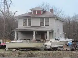 Prior to the industrial settlements of mills along the Patuxent river. The Gordon property was patented as part of Alexander and Absolute Warfield's estate "Warfield's Range", which was resurveyed as "Sappington's Sweep" as part of a 1731 inheritance to Thomas Sappington from his grandfather Thomas Rutland.[1] What later became Route 1 was built along the property in 1749 and was operated as a turnpike from 1820 to 1865. In 1870, John and Elizabeth Water sold their interest in Sappington's sweep to William and Mary Cissel in 1890. The property was sold the same year for $35,000 to brothers Harry D. and Fulton R. Gordon from Bailey's Crossroads, who subdivided a tract on the Howard county side of the Patuxent river to form "North Laurel".[2][3] The business office for the development was operated out of an office on 918F Street in Washington as Gordon & Bro, marketing real estate in the "suburbs" between Baltimore and Washington.[4] By 1894, the Gordon brothers sold a portion of "North Laurel" for $64,000 to the Key Brothers & Company to finance the purchase of the Lincoln Hotel in Washington D.C. Fulton Gordon divorced shortly afterward and declared himself broke.[5][6] The brothers built an American Foursquare on "Lot 10" prior to 1905 sitting prominently along route one with a large stone retaining wall.[7] The house remained in their name until the late 1930s while the brothers developed land that would become Chevy Chase, Maryland. Land subdivision would be a booming business a century later, the "smart growth" features of tightly clustered lots featuring access to light rail services, walkable community and the county's first traffic circles remained largely undeveloped until the 1960s with some lots vacant today. Fulton R. Gordon was quoted as saying if the land had been given to him "I'd have been robbed".[8]