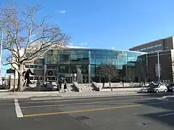 In 1957, the Hartford Public Library moved from the Wadsworth Atheneum into a new building just two blocks away. Designed by Schutz and Goodwin, the 94,448-square-foot (8,774.5 m2) building at 500 Main Street included modern reading and reference rooms.