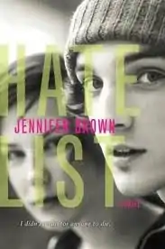 Hate List is a young adult novel written by Jennifer Brown and published in 2009 by Little, Brown Books for Young Readers. Jennifer Brown, who wrote a newspaper humor column for four years, switched to a more serious side for her debut novel, Hate List. The novel is set after a shooting incident at an American high school and deals with themes of hatred, bullying, family tension, and suicide.