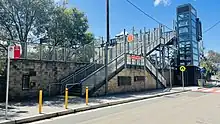 At the northern end of the platform there is a steel truss footbridge dating from the early 20th century, though somewhat modified with the addition of an upper half truss, steel beams and concrete deck and stairs (dating from the late 20th century). The footbridge goes from Brooklyn Road in the east, across the lines to the platform and the wharf.[3]