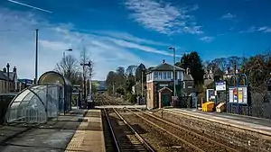 Haydon Bridge is a railway station on the Tyne Valley Line, which runs between Newcastle and Carlisle via Hexham. The station, situated 29 miles 68 chains (29.8 mi; 48.0 km) west of Newcastle, serves the village of Haydon Bridge in Northumberland, England. It is owned by Network Rail and managed by Northern Trains.