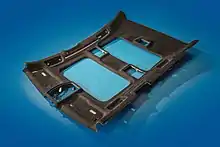 A headliner often is a composite material that is adhered to the inside roof of automobiles or yachts. It typically consists of a face fabric with nonwoven or foam backing. Headliners consist of multilayered composite materials that bring together multiple functionalities, including the requested look, feel, stiffness, and sound reduction needed in cars. Automotive headliners are optimised with respect to head impact counter measures[1] or to integrate additional LED lighting film behind the fabric. Most headliners consist of a tricot knit fabric that is napped to provide a soft touch and uniform appearance. The fabric is adhered to melted polyurethane foam. This fabric-foam composite is glued to the interior fiberglass roof of the automobile.