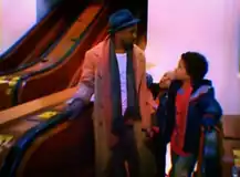 West reportedly provided Gondry with $500,000 for the music video's production budget.[87] Gondry, who has said that he prefers "to be more in the physical world", created the video with basic technology by stylistically molding objects. He filmed it frame-by-frame, shooting by recranking the camera and re-exposing the film various times.[88] Utilizing his signature special effects, Gondry created a fantasy world situated inspired by the 1964 film Mary Poppins inside a department store, where inanimate objects and appliances come to life.[3][79][88] Gondry declared that doing fanciful high-budget conceptual music videos is not his main occupation, saying he does ones with "zero budget" a lot more than those with an average budget.[83] Working with a large budget, he gave the visual a slick, colorful treatment.[80][82] Gondry originally wanted to fill a department store with homeless people, a "hardcore" idea that led to West desiring something "more family-oriented, something sweet".[83][84] The result was a high-concept video depicting West having fun with fictional children inside a deserted Macy's store, for which Levine transformed into a security guard.[3][83][84] West personally found the original concept too hardcore, having concerns it may "alienate his audience" during the Christmas season.[83] The video aired in the US on the week of December 19, 2005.[85]