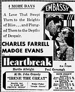 Heartbreak (also known as Love and War) is a 1931 American pre-Code war drama film directed by Alfred L. Werker and starring Charles Farrell, Madge Evans and Paul Cavanagh.[1]