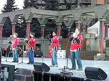 The Heebee-jeebees performing at Olympic Plaza in Calgary, Alberta on November 17, 2007