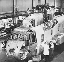 Final assembly of a Sikorsky CH-53 Sea Stallion helicopter in 1964.