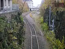 The Helsinki harbour rail line (Finnish: Helsingin satamarata) was a side rail track in Helsinki, Finland, built in the 1890s, and dismantled in 2009. Originally it led from the Helsinki Central railway station, via the city's coastline, to Katajanokka. Its original length was 7 kilometres (4.3 mi), but in its final stage, its length was only about 3 kilometres (1.9 mi). In the final phase the track had two level crossings and a rail yard in the Länsisatama (West Harbour). Near the start of the track were the former VR warehouses. It was used only by trains going to the harbour and Hietalahti shipyard, but special request trains have also travelled the track.