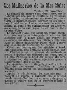 Admiral Henri du Couëdic de Kerérant (1868–1947) was a 20th-century French naval officer, serving during the First and Second World Wars. He was the commanding officer of the ship Jean-Bart in the Dardanelles during the Black Sea Mutiny. He restored authority on the ship that had been taken over by the mutineers. From June 1924 he was the commander in chief of the Division Navale du Levant (covering the eastern Mediterranean, the Sea of Marmara and the Dardanelles, the Black Sea, the Red Sea, and the Gulf of Aden).