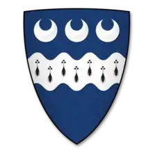 Bright’s arms are blazoned Azure, a fess wavy ermine in chief three crescents argent.[12]