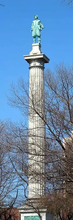 The park is named after famed English explorer Henry Hudson, who is also the namesake of the nearby Hudson River, Henry Hudson Parkway and Henry Hudson Bridge. In 1906 it was decided to dedicate a monument celebrating the 300th anniversary of Hudson's arrival in what later became Lower New York Bay. The project encountered multiple delays, but in 1909 the city obtained the money, and in 1912 a 100-foot (30 m) Doric column, designed by Walter Cook of Babb, Cook & Welch,[1][2] was set in place, but shortly after, funds for the project, which had been raised by subscription,[1] ran out. It was revived by Robert Moses in the late 1930s, and by 1938, the area around the monument had been designated as a park and a 16-foot (4.9 m) bronze statue of Henry Hudson,[3] sculpted by Karl Bitter and Karl Gruppe,[1] had been placed atop the column.