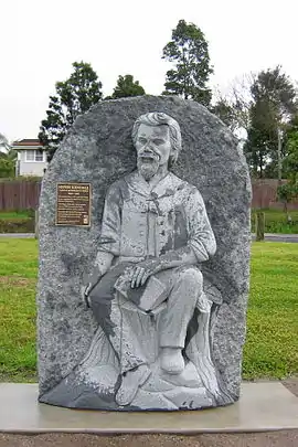 Comboyne Street in Kendall has a granitic sculpture to the poet (GPS 31°37′58″S 152°42′23″E / 31.632715°S 152.706367°E).[19]