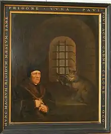 The 2004 Oxford DNB states that his support for Henry Tudor began before 1483, and that he probably participated in Buckingham's Rebellion. No evidentiary support is available for either statement, despite their plausibility. The entry continues, "Family legend has it that he was imprisoned and interrogated by Richard III himself."[6] However, Richard III is never named by the Wyatt family. The assumption is derived from two instances of the word "tyrant" applied to Wyatt's captor, a term which in the 16th century was used to refer to Richard III but could refer to "Anyone who acts in a cruel, violent, or wicked manner".[7] More likely it referred to the Scottish baron postulated by Conway (above). Records show that Richard III never set foot in Scotland during his reign, although if Wyatt was a captor of Richard III in the Tower of London after the Buckingham Revolt and was years later held at ransom by the Scottish during Scottish attacks on Carlisle, then Richard III's travel itinerary would not be relevant.[8]