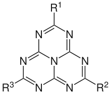 3, that consist of a planar triangular core group or three fused triazine rings, with three hydrogen atoms at the corners. It is a yellow, weakly fluorescent solid with melting point over 300 °C. It is soluble in organic solvents such as acetonitrile, but is decomposed by water in the presence of light.[1][2]
