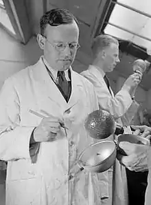 Working on adhesive for the sticky bomb in 1943 at Kay Brothers in Stockport where Hartley was the technical manager.[1]