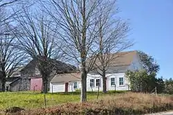 The Guy Hersey Farm, 1088 Franklin Highway, includes 57 acres (23 ha) of land, a c. 1830 farmhouse, and a number of barns and other outbuildings. Although the house predates the establishment of the farm by Hiram Fellows, physical and documentary evidence suggest it was moved to this site from another location. It began as a 1+1⁄2-story wood-frame house with a side-gable roof. In the 1850s it was enlarged by raising the roof and adding a south wing. A barn dating to c. 1865-80 is connected to the house by a shed extension, and a second barn (c. 1917) is attached to the first. A third barn, dating to c. 1920 and moved to the site by Guy Hersey from another farm, forms an enclosed barnyard with the other two. The most interesting outbuilding is a c. 1890 structure that was initially used as a piggery, but was converted by Hersey into a smithy. Hersey's property also includes the foundational remnants of an old schoolhouse.[2]
