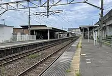 The station has one side platform and one island platform connected to the station building by a footbridge. The station has a Midori no Madoguchi staffed ticket office.