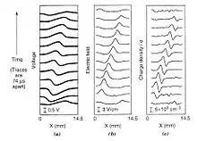 Such moving high-field domains are measured in p-Ge with (a) local voltage (b) field- and (c) carrier density oscillation (Fig. 9).[16]