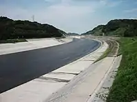 In the 1990s works commenced on a vast flood control system, including the construction of a discharge channel connecting Hii and Kando rivers. It diverts the excess water through Kando river into the Taisha Bay[7][13] Since then the Kando river is regarded as a part of Hii river system.[3][10] The channel, completed in 2013, received the 2014 Outstanding Civil Engineering Achievement Award.[30] Additional elements of the flood control system are the Obara dam on Hii river and the Shitsumi dam on Kando river, as well as renovation of the Ohashi river.[7]
