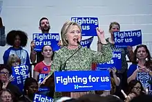 Hillary Clinton holding a campaign rally at Hillside High School, March 2016