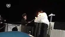 The most well-known custom of Lag BaOmer is the lighting of bonfires. The custom symbolises the "spiritual light" brought in to the world by Rabbi Shimon bar Yochai, to whom the Zohar is ascribed. At the tomb of Rabbi Shimon, the honour of lighting the main bonfire traditionally goes to the Rebbes of the Boyaner dynasty. This privilege was purchased by Rabbi Avrohom Yaakov Friedman of Sadigura from the Sephardi guardians of Meron and Safed. He bequeathed the honour to his eldest son, Rabbi Yitzchok Friedman of Boyan and his progeny.[6] The first hadlakah (lighting) is attended by hundreds of thousands of people annually; in 2001, the crowd was estimated at 300,000.[7] In 2018, 18 different Hassidic Rebbes took turns leading the festivities surrounded by their followers.[8]